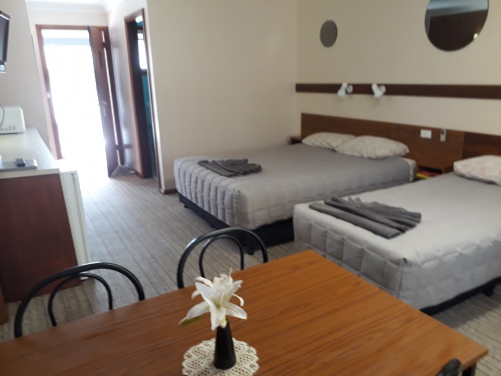 This suite has 1 queen bed & 3 single beds in a 2 bedroom unit. It also includes a microwave, refrigerator, toaster, kettle, flat-screen TV and a DVD player, cups & plates. The private bathroom has a hairdryer, shower and free toiletries.
